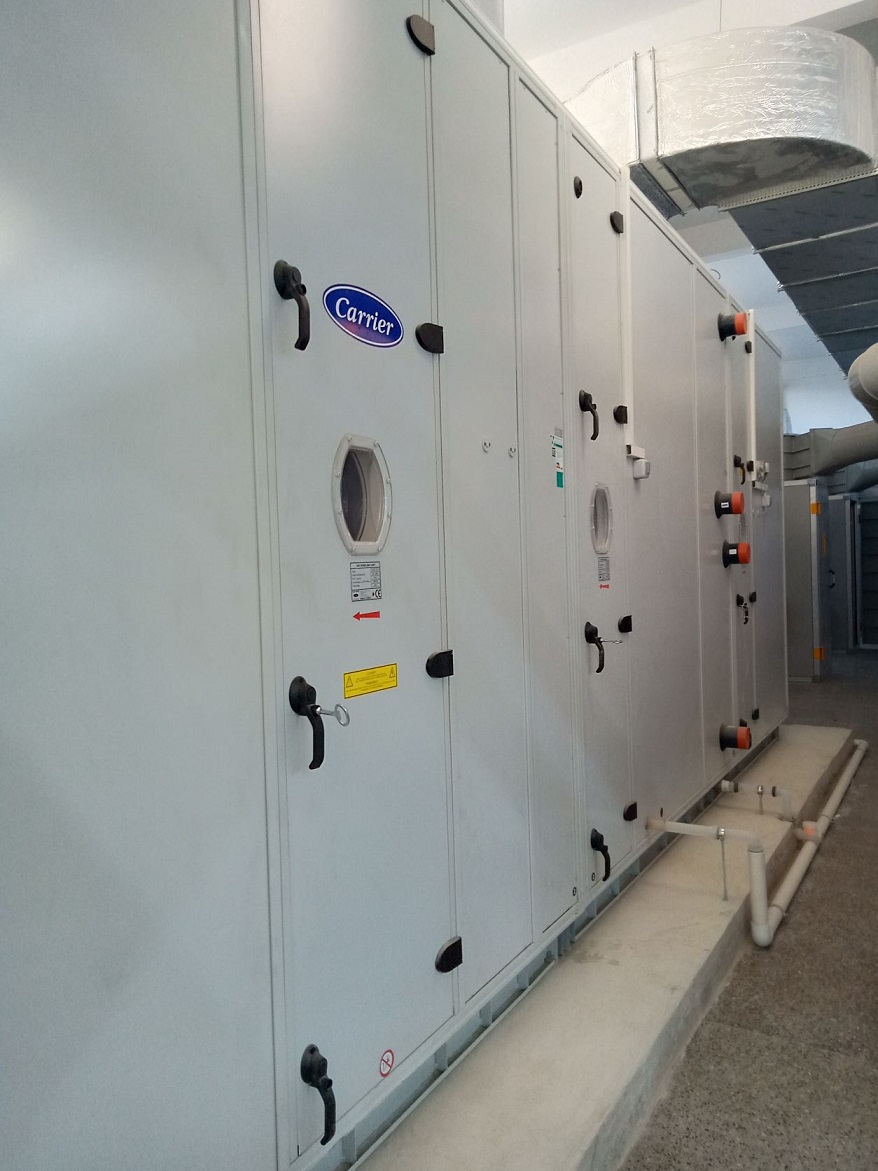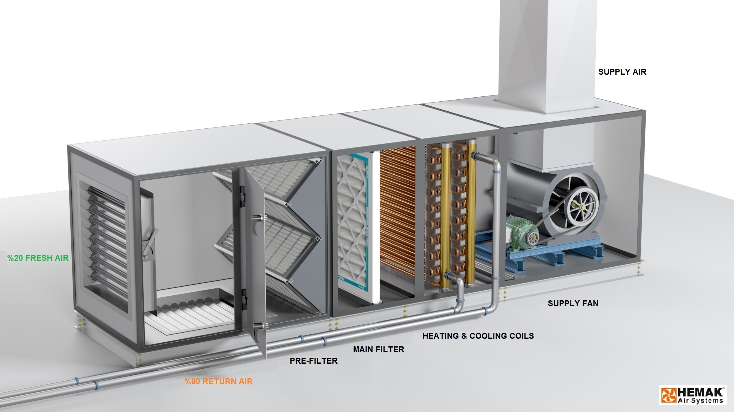 Klima santrali; ısıtma, havalandırma ve klima (HVAC) sisteminin bir parçası olarak ortamı iklimlendirmek ve sirküle etmek için kullanılan bir cihazdır. Üfleme fanları, ısıtma ve soğutma bataryaları, nemlendirme ünitesi, filtre sistemi, karışım hücresi ve damperlerden oluşmaktadır. Klima santralleri, şartlandırılmış havayı binaya dağıtan ve tekrar geri döndüren bir kanal sistemine bağlanır.