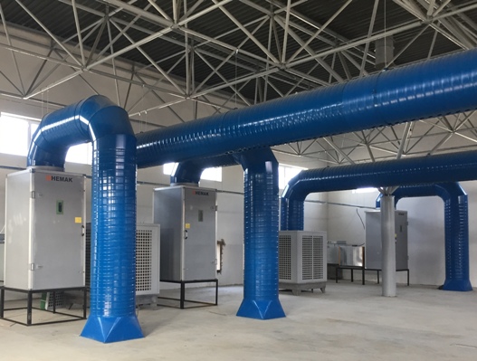 Soğutma ile birlikte nemin de istendiği Tekstil Sektörü gibi sektörlerde en uygun çözüm Evaporatif Klimalardır.
